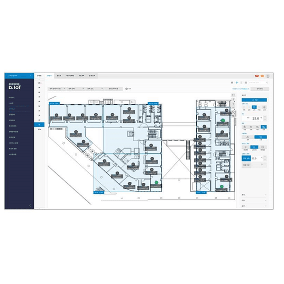 Samsung b.Iot Lite este o „Soluție de control integrat” pentru clădirile mici și mijlocii. Platforma sa deschisă conectează dispozitive (de exemplu, senzori și lumini) și mașini la internet, contribuind la îmbunătățirea eficienței și a confortului prin schimbul de date. b.Iot Lite oferă utilizatorilor un tablou de bord personalizabil care afișează date în timp real pentru a oferi o imagine de ansamblu rapidă asupra funcționării VRF. Creați și exportați cu ușurință rapoarte de stare, rapoarte de tendință a datelor și rapoarte de utilizare a energiei, pentru controlul centralizat al sistemelor dvs.